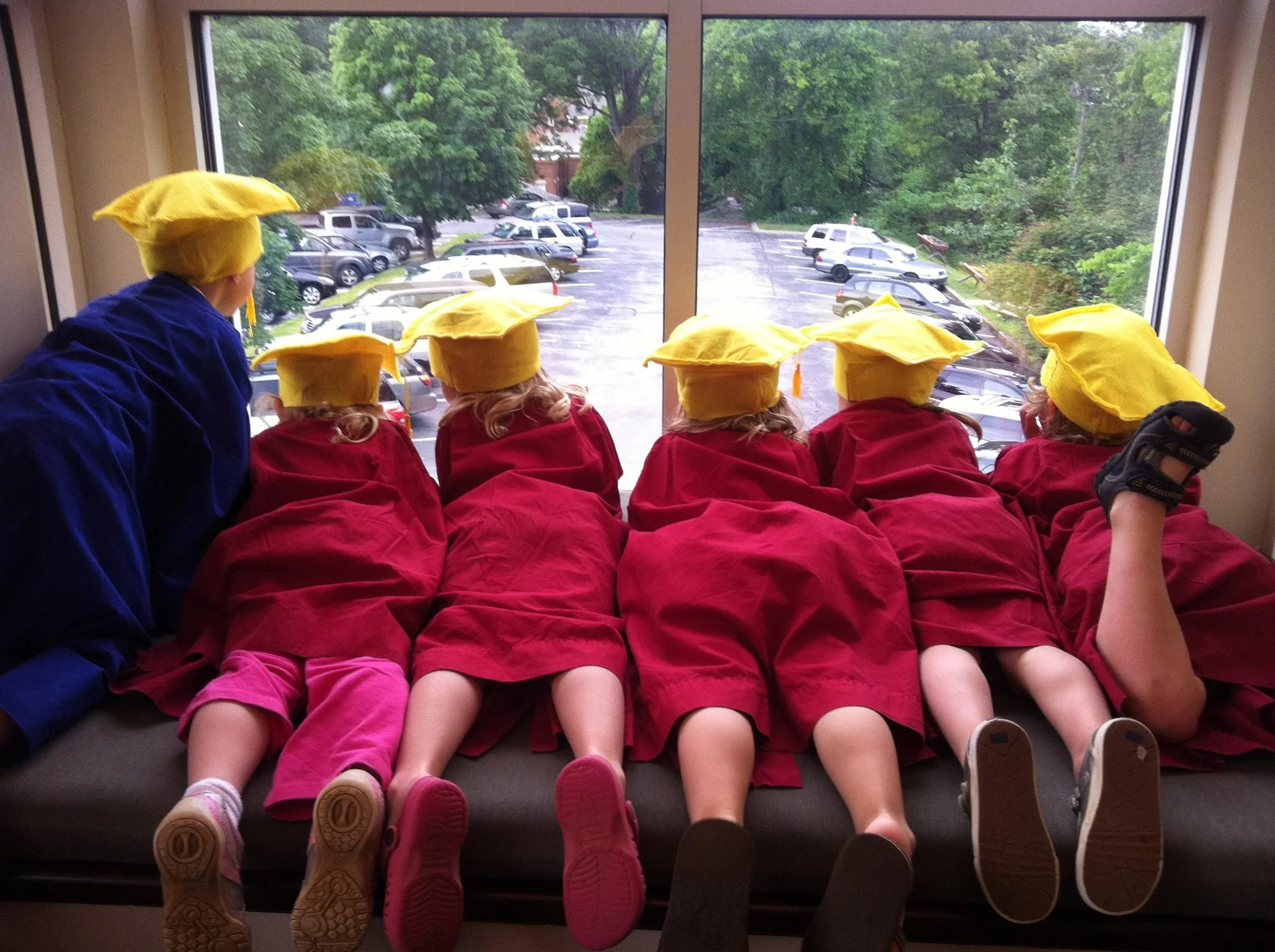 Pre-K consists of up to 18 four and five year olds. There is one lead teacher as well as two assistants. This class focuses on preparing students for kindergarten by teaching them necessary skills such as writing their name, conducting numerous science experiments, and practicing language skill with vocabulary building activities. They have a “letter of the week” and also learn many folk songs and nursery rhymes. Students focus on developing physical coordination and strength through yoga, organized games and calisthenics. Each May, students take part in a graduation ceremony.